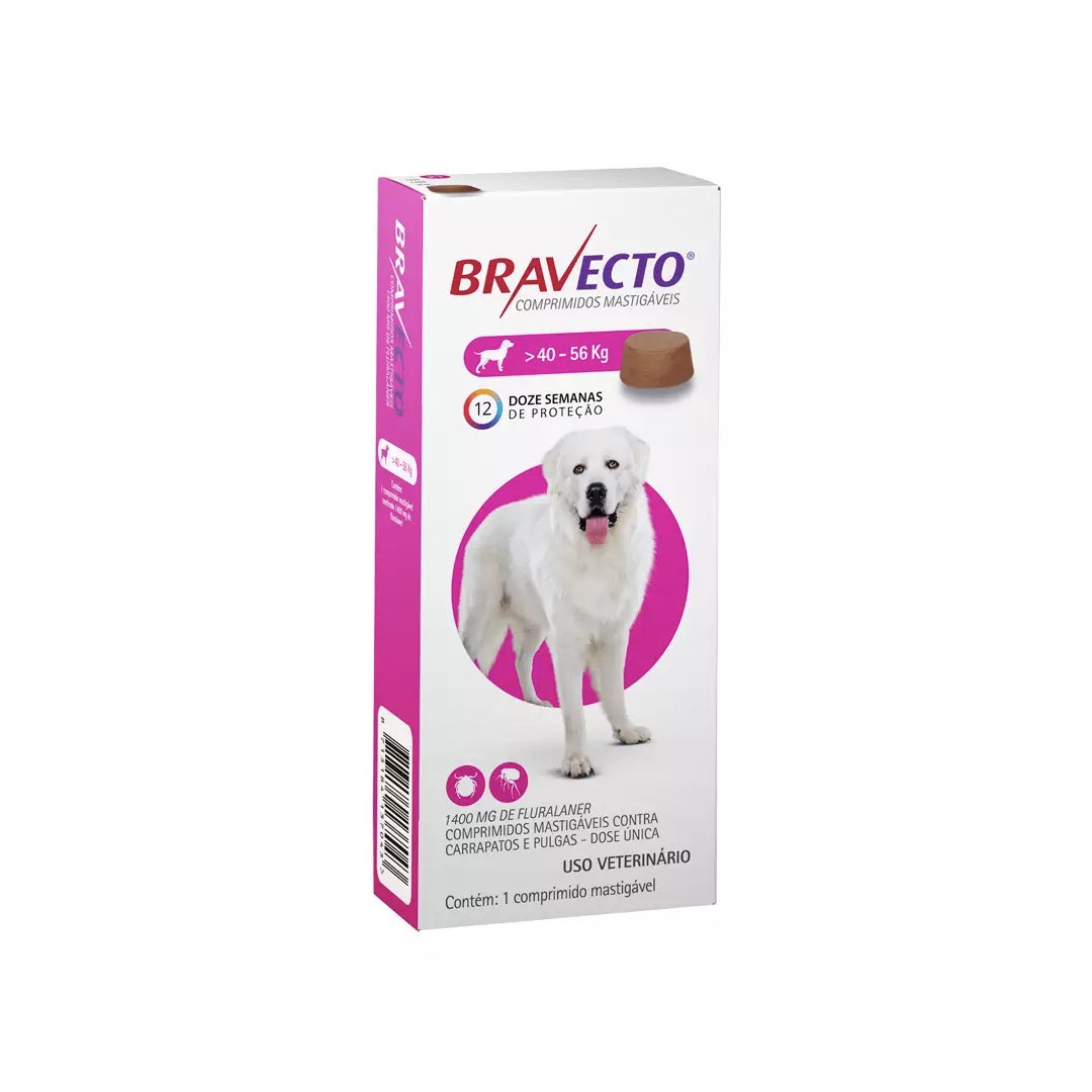 ANTIPULGAS E CARRAPATOS PARA CÃES MSD BRAVECTO 1400MG - 40 A 56KG