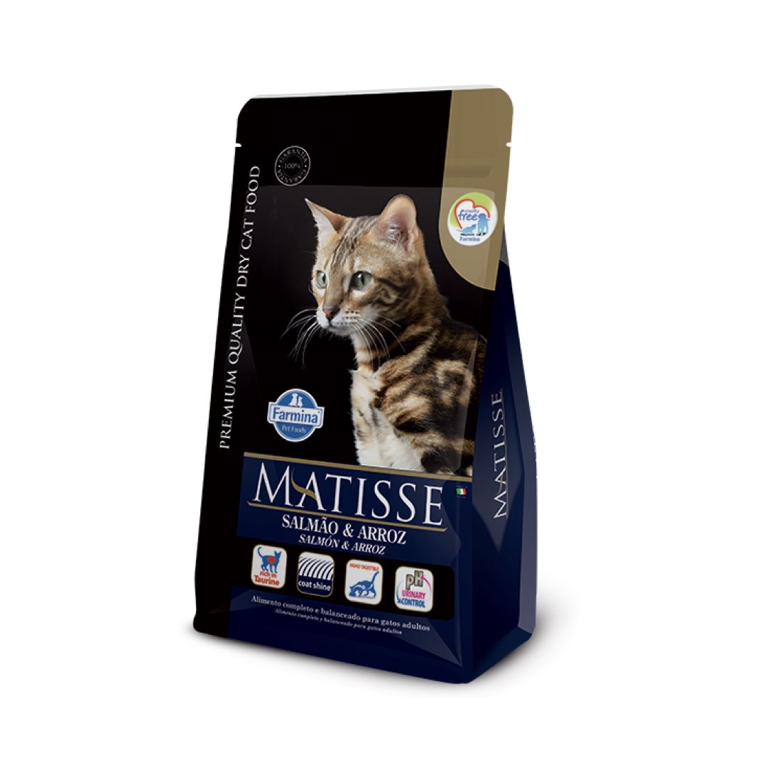 Matisse Frango & Arroz é um alimento completo e balanceado para gatos adultos com nível de atividade física normal.