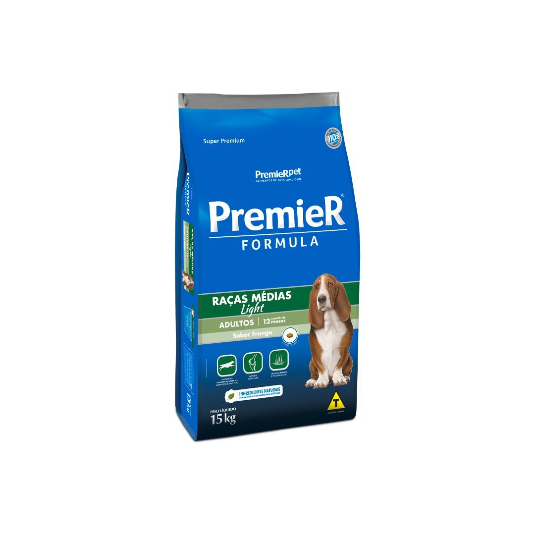 RAÇÃO PREMIER FÓRMULA LIGHT PARA CÃES ADULTOS DE RAÇAS MÉDIAS 15KG