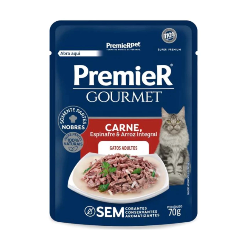 RAÇÃO ÚMIDA SACHÊ PREMIER GOURMET GATOS ADULTOS CARNE 70g